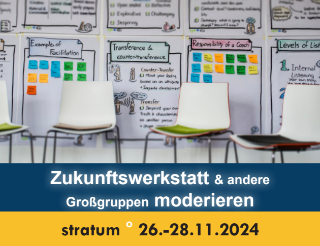 Kristina Nauditt bietet vom 26.-28 November 2024 eine weitere Fortbildung zur Moderation von Zukunftswerkstätten und anderen Großgruppenformaten an. Mehr findet ihr hier: www.argo-team.de