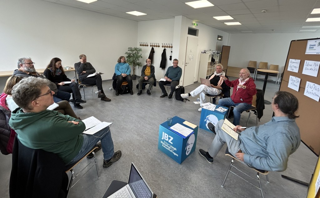 Carmen Bayer berichtete von erfolgreichen Ausbildungen „Zukunftswerkstätten gekonnt anleiten“ der Robert-Jungk-Bibliothek, die aufgrund großer Anfrage heuer zweimal stattgefunden haben. Der nächste Termin im Februar ist bereits ausgebucht, im Juni 2026 wird ein weiterer Termin angeboten. Sie präsentierte auch ein vom JBZ-Grafiker in Auftrag gegebenes Logo für das Netzwerk. Zudem wurden neue Vorlagen für die einzelnen Phasen der JBZ-Zukunftswerkstätten präsentiert.