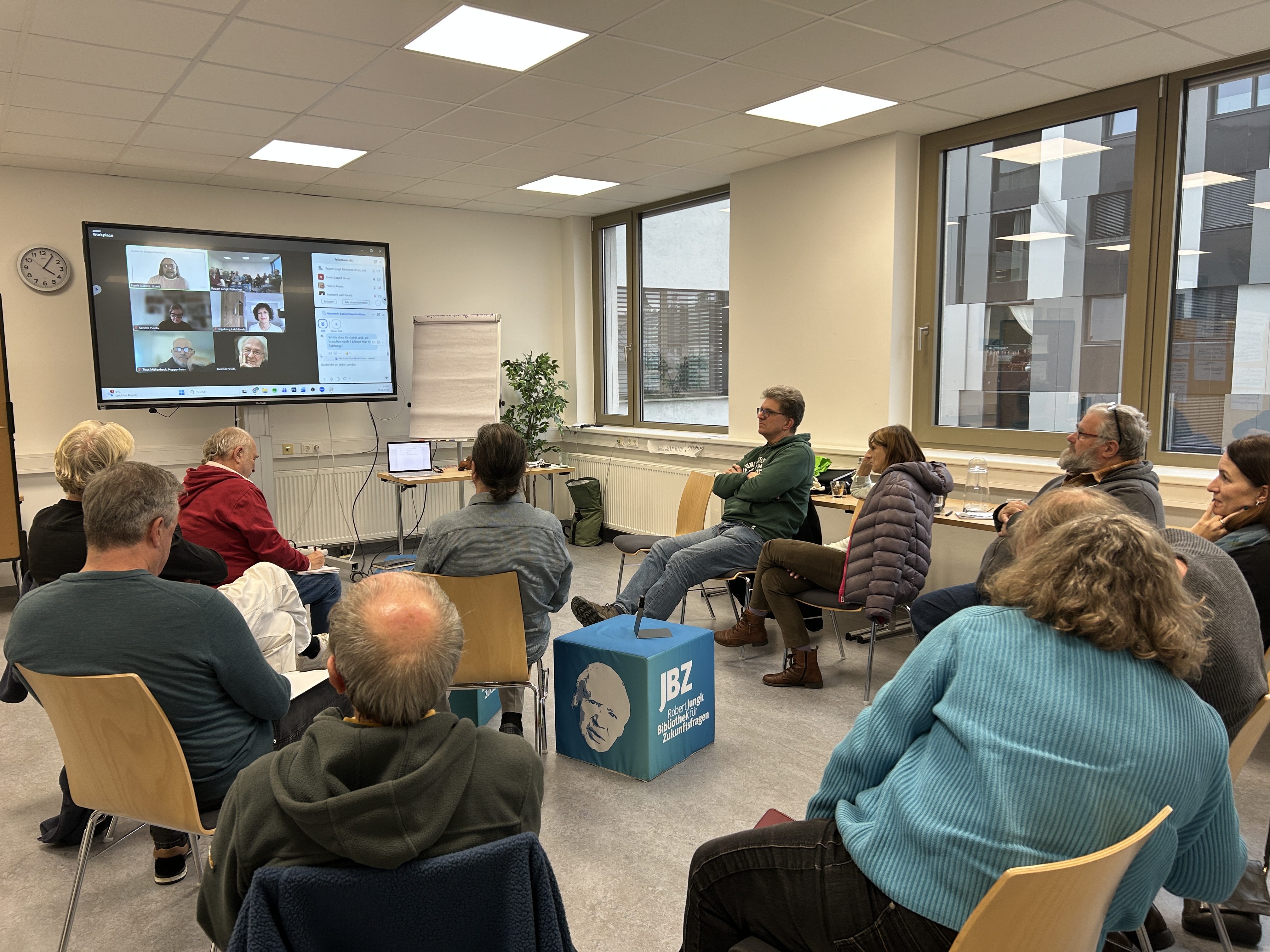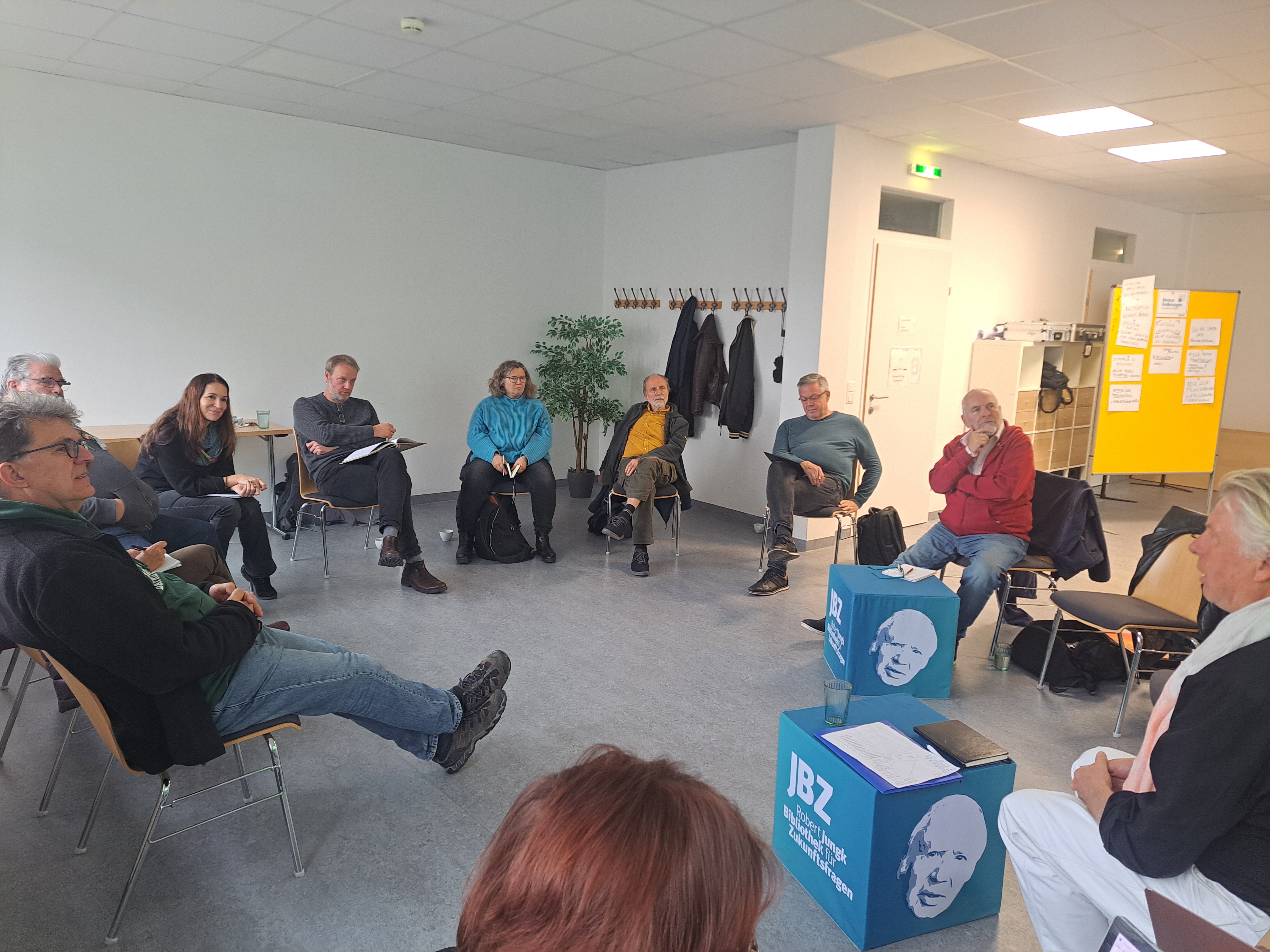 Carmen Bayer berichtete von erfolgreichen Ausbildungen „Zukunftswerkstätten gekonnt anleiten“ der Robert-Jungk-Bibliothek, die aufgrund großer Anfrage heuer zweimal stattgefunden haben. Der nächste Termin im Februar ist bereits ausgebucht, im Juni 2026 wird ein weiterer Termin angeboten. Sie präsentierte auch ein vom JBZ-Grafiker in Auftrag gegebenes Logo für das Netzwerk. Zudem wurden neue Vorlagen für die einzelnen Phasen der JBZ-Zukunftswerkstätten präsentiert.